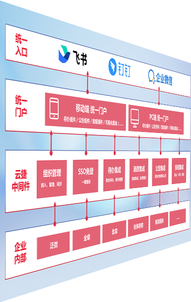 对协作平台提供支持服务,,,,支持企业应用与协作平台对接,,,,包含组织同步、、消息集成、、待办集成等。。。。支持目前主流的协作平台:钉钉、、、企微和飞书。。。。