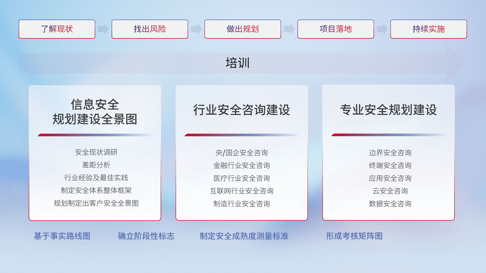 针对客户行业特性,,将宏观的安全战略和需求,,通过专业的交付服务,,,实现项目落地,,为客户提供标准规范的集成交付服务。。。