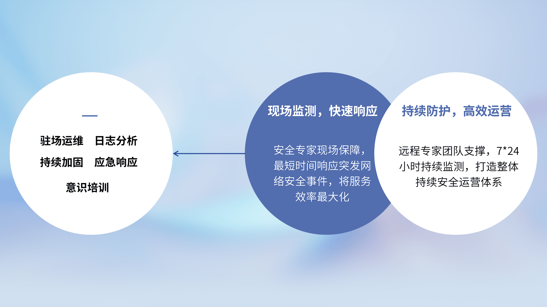 7X24小时持续监测安全事件,保持安全策略有效性,降低资产脆弱性风险,,,精准拦截黑客攻击,,,,减少被黑客利用的机会,,,,第一时间遏制,,降低损失。。。。